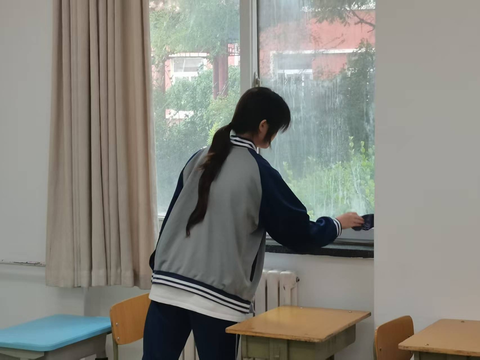 高三学业虽忙,却未阻挡大家服务校园的脚步。每次清扫前,团支书都会提前进行分工:有人手持抹布,细致擦拭积尘的窗台与黑板边框,让阳光能毫无阻隔地洒进教室;有人推着拖把,来回清理地面的污渍,留下洁净的地板;还有人主动整理散落的桌椅,将歪斜的座椅一一归位,让每一间教室都恢复整齐模样。没有惊天动地的壮举,只有弯腰擦拭的专注、俯身清扫的认真,这些细碎的动作里,藏着对校园的热爱,更藏着团员们的责任与担当。